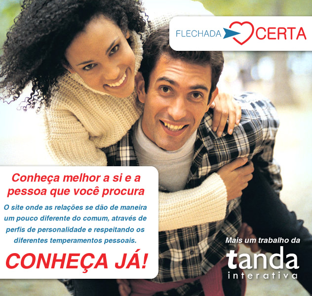 Concebido pelo fisioterapeuta e escritor Dr. Mário Sabha Jr., o Flechada Certa é uma nova rede social com a proposta de auto-descobrimento e de criação de novos laços de amizades com base na análise de perfis biotipológicos de cada pessoa. Com design criado pelo artista Matheus Hass, o Flechada Certa vem sendo desenvolvimento pela Tanda Interativa nos últimos 2 anos, passando por várias etapas de testes e avaliação, para hoje, abrir-se ao público. Entre e cadastre-se! Descubra essa nova forma de conhecer pessoas compatíveis com você!