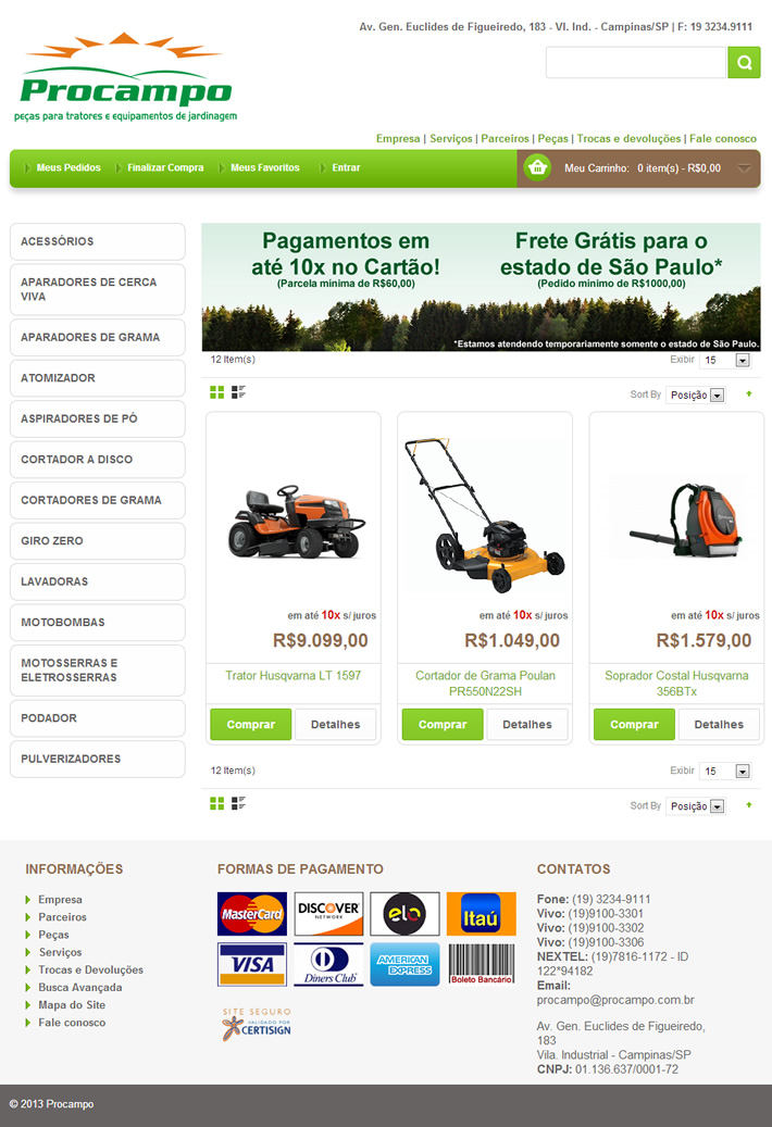 Leia MaisPresente no mercado há mais de 15 anos, a Procampo, um tradicional comércio de peças para tratores e equipamentos de jardinagem acaba de inaugurar seu novo site, dessa vez, um site que irá levar suas vendas à um novo nível.
